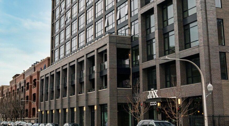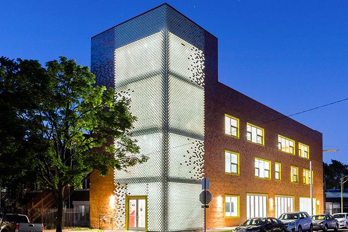 This Chicago student housing project uses grey thin brick in alternating thicknesses in a vertically stacked pattern to achieve a unique look.